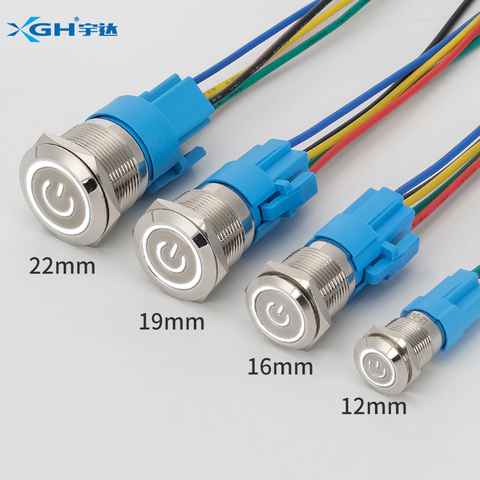 Interrupteur à bouton-poussoir étanche Symbole d'alimentation Verrouillage Momentané Illuminé 8mm 10mm 12mm 16mm 19mm 22mm 25mm 28mm 30mm